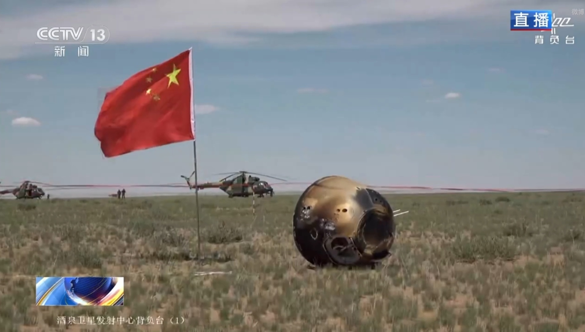The gumdrop-shaped sample return capsule floated down to the ground on the end of a parachute, with the descent tracked on live television. After today’s touchdown, at 2:07 p.m. local time (0607 GMT), members of the mission’s recovery team checked the capsule and unfurled a Chinese flag nearby.